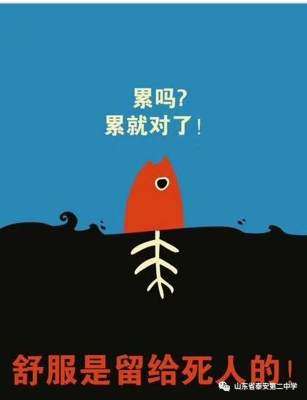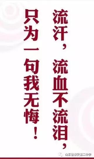 第三句:不管风吹浪打,胜似闲庭信步。高考不仅是知识和能力的考查,也是勇气和心态的较量。高三一年,讲义满天飞,试卷飞满天。周测、月考、一模、二模、直到五模,你一定会遇到退后、失败,但你要明白,每一次失败都是你的一次渡劫,渡劫越多,修道才能越深,最后得其大成。而在这渡劫的过程中,你也可能会陷入无尽的心灵的黑暗,而且你会偶尔觉得没有人帮得了你。是的,你说的对,没有人能真正帮得了你。因为,你,只有你,才是自己的上帝,自己的救世主。如果你不能解救自己,你就永远摆脱不了奴隶的命运。什么是高三精神?那就是“特别能吃苦,特别能战斗,特别有志气,特别有作为”,在这种强压状态下,要把自己调整到“能吃能睡,没心没肺”的纯净状态,做到“敌军围困千重,我自岿然不动”。