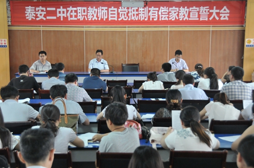 泰安二中开展自觉抵制有偿家教宣誓活动