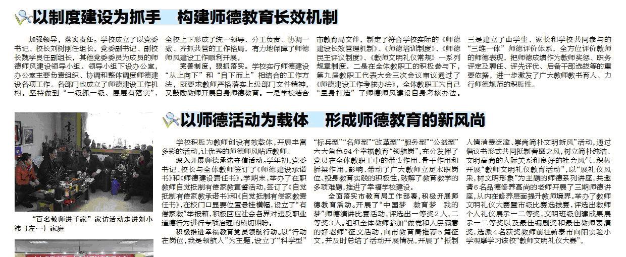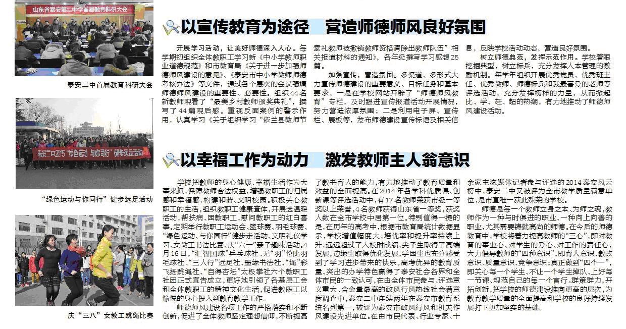 《泰山晚报》7月9日T23版专版刊登“泰安二中师德师风建设工作纪实”