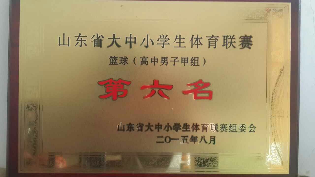 泰安二中获得2015年山东省中学生篮球联赛第六名