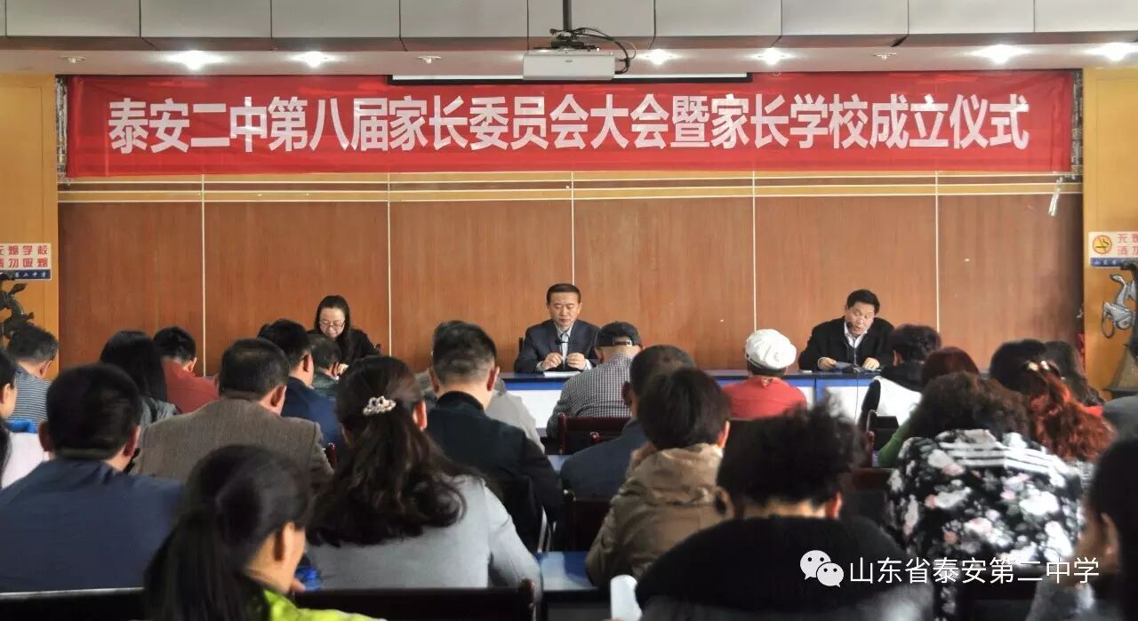 4月14日,泰安二中在明德楼国际交流中心隆重举行第八届家长委员会大会暨家长学校成立仪式。学校领导、48名班级家委会主任、学校有关部门共58人参加了会议。