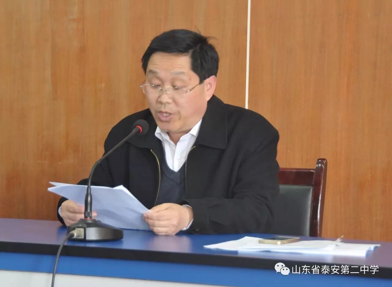 副校长、党委委员王冲介绍了学校的发展历史、办学理念和2016年教育教学工作取得的突出成就。他指出,新的一年,学校将把“全面提高教学质量”作为核心任务,把促进学生成长成才作为一切工作的出发点和落脚点,全面推进教育教学改革,把学校建设成为办学理念先进、校园环境优美、教学质量一流、教育特色鲜明的山东名校,努力办好让泰安人民满意的优质教育。
