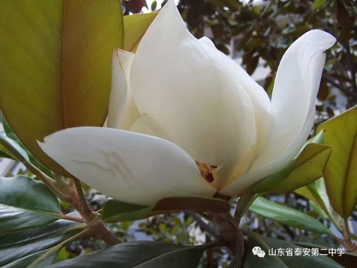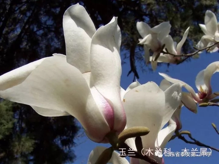 明德楼前的两株树的花正在陆续绽放,这是荷花玉兰。