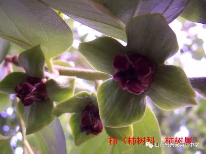 柿 ,柿科, 柿属 。落叶乔木。叶纸质,卵状椭圆形。花雌雄异株,聚伞花序腋生。花冠钟形,黄白色,4裂,雄花多呈聚伞花序。雌花单生。果球形或卵圆形,成熟后黄或橙黄色,花期5月,果熟10月。
