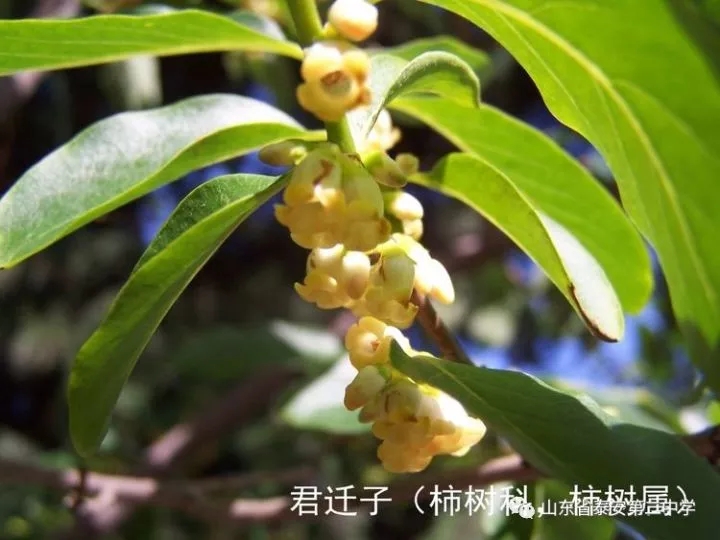 君迁子,柿科,柿属。又称黑枣、软枣。落叶乔木。叶纸质,卵状椭圆形。花单性或杂性异株花萼密生柔毛,4裂,。花冠钟形,淡黄色或带淡红色。,雄花簇生叶腋。雌花单生。果球形,成熟后蓝黑色,花期5月,果熟10月。