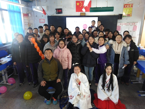 从中午开始,校园里就洋溢着同学们激动而兴奋的欢笑声。同学们有的忙着搬桌子挪椅子,有的忙着装饰教室,有的忙着排练即将表演的节目,每一座教学楼里都充满了节日的喜庆。联欢会上各班人才尽显其能,除了常见的唱歌跳舞,还有别出心裁的魔术、话剧、相声、小品等,部分年轻班主任和任课教师也参与其中,师生同乐,像一家人一样其乐融融。